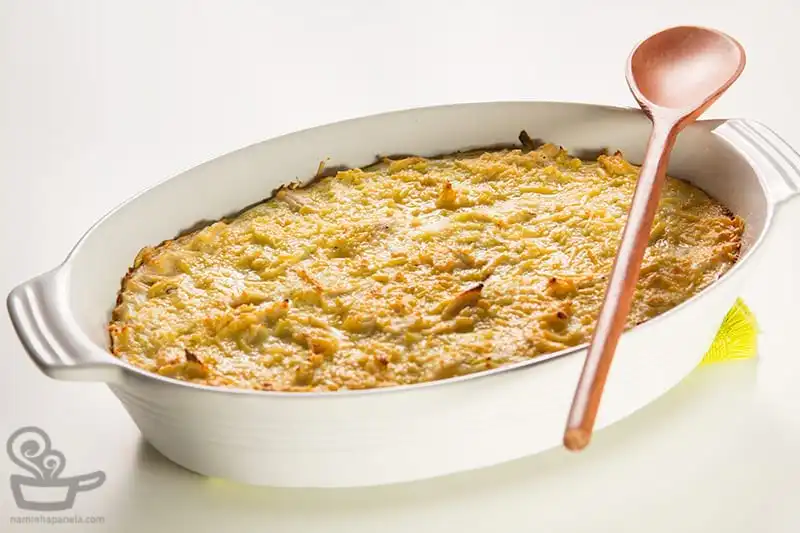 - Acerte o sal, se necessário, e então transfira o creme para uma travessa, salpique o queijo parmesão por cima e leve para gratinar no forno com a temperatura bem alta.