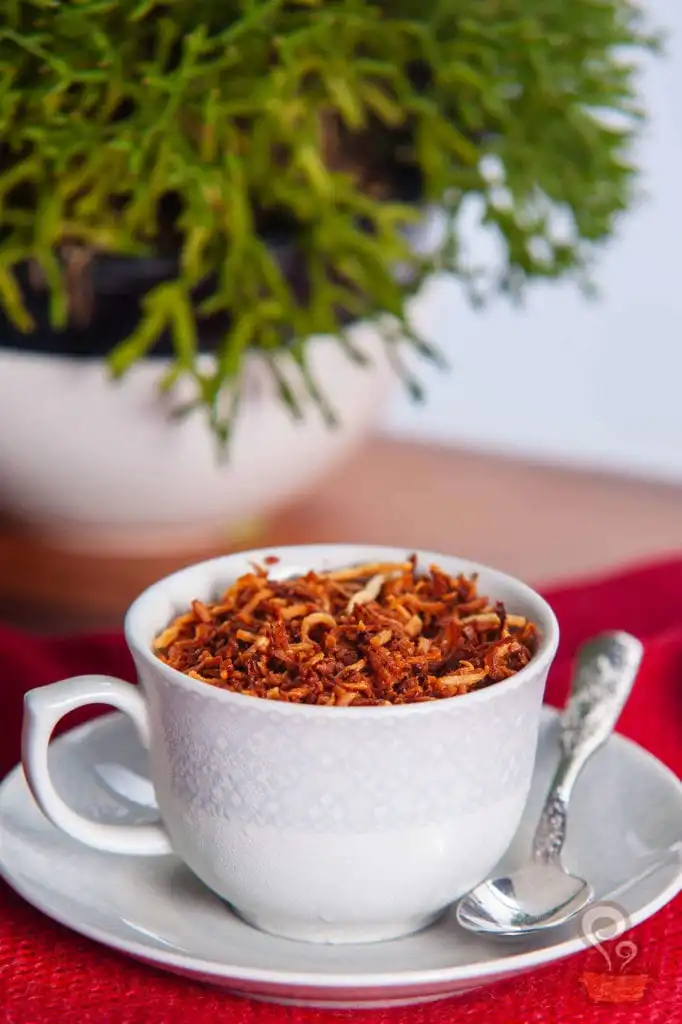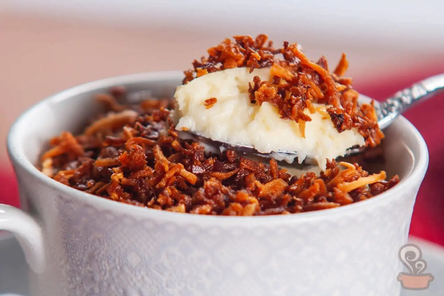 - Para finalizar, salpique o coco dourado em cima do seu creme e se delicie