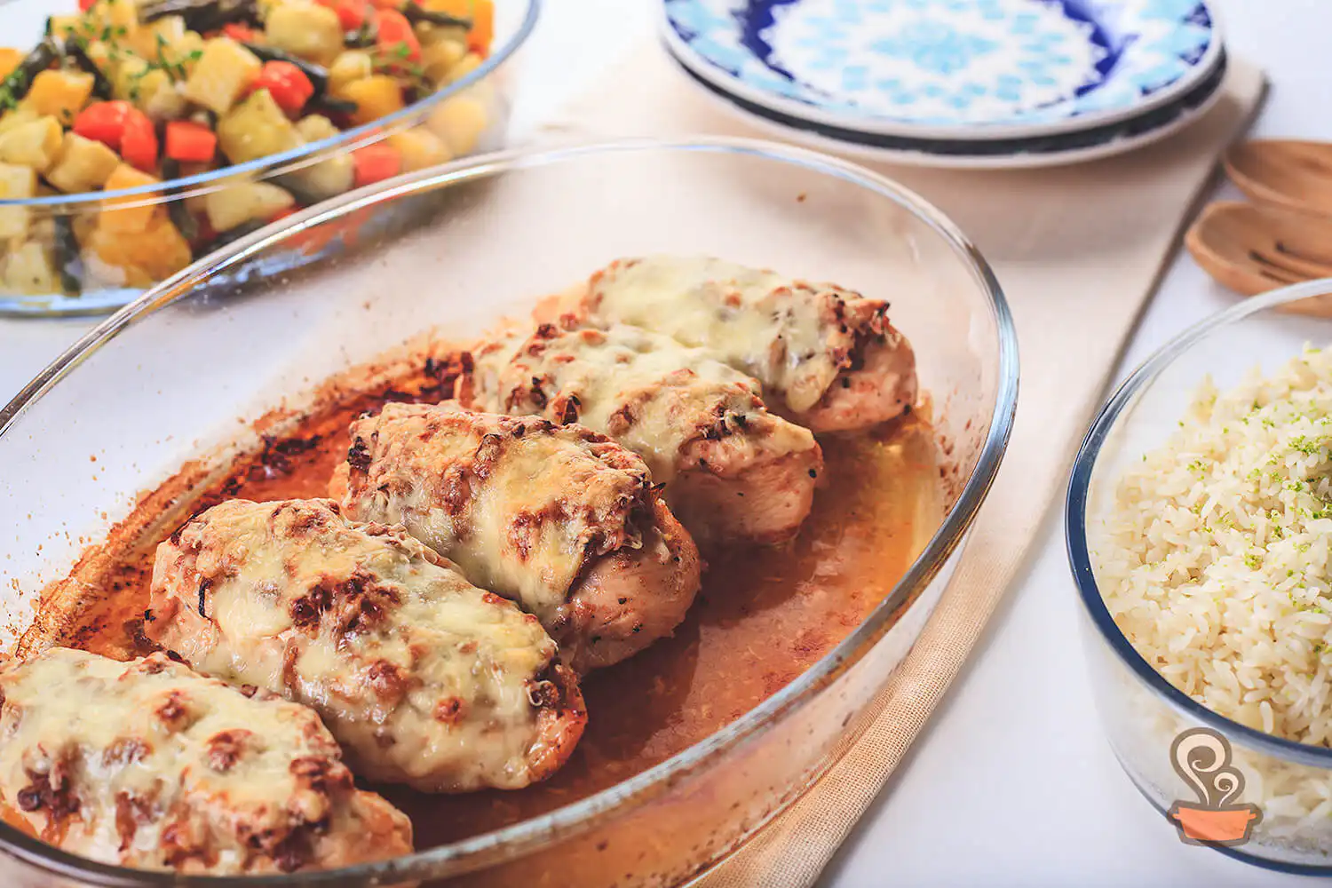 Frango gratinado com cebola caramelizada