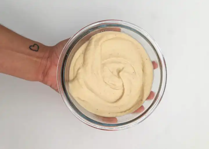 - Coloque tudo no processador (ou liquidificador potente) e bata até ficar bem cremoso. Adicione mais ou menos água para chegar na textura que mais te agradar