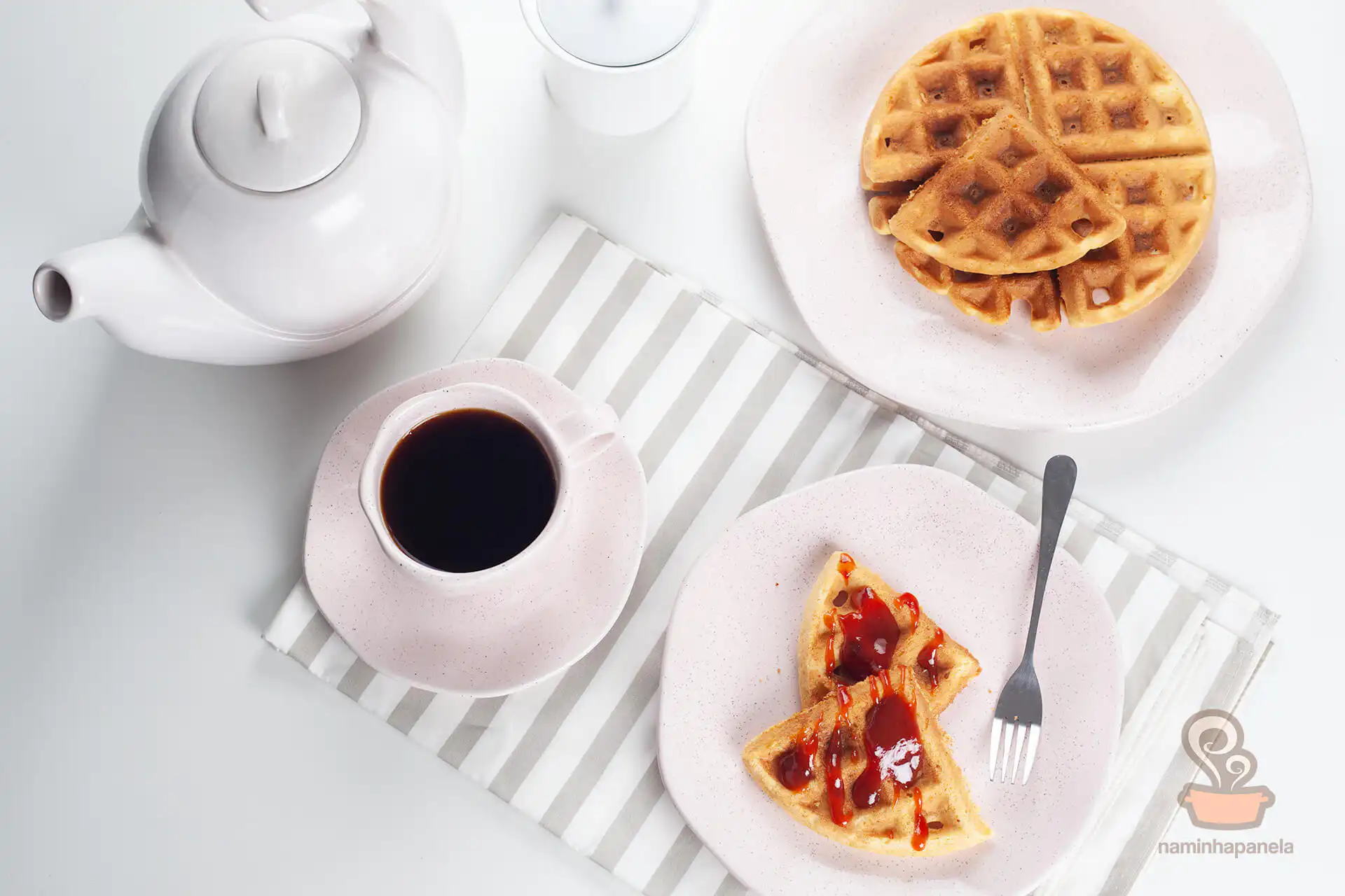 Essa receita não apenas é uma delícia, como também uma ótima forma de variar os sabores na sua manhã. O cheirinho desses waffles enquanto assam de fato já abrirão seu apetite. E a calda de goiabada deixa tudo ainda mais perfeito.