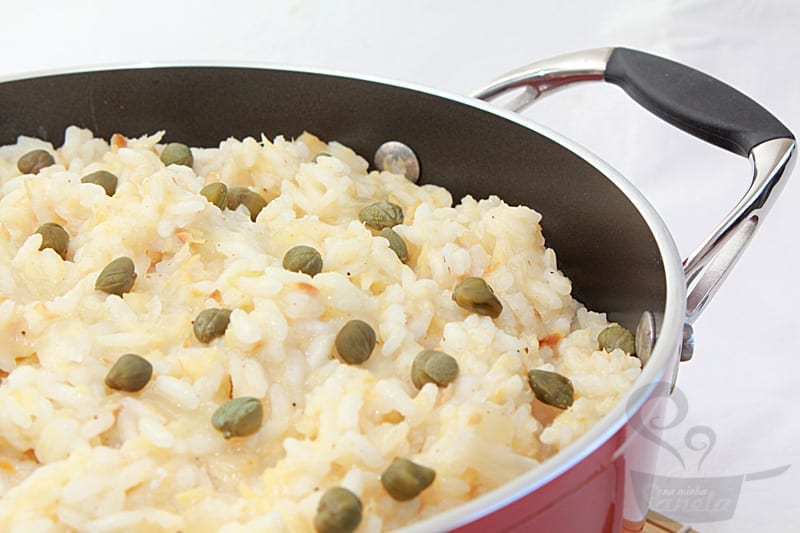 O risoto ficou lindo, as alcaparras deram o toque especial, devia estar delicioso.